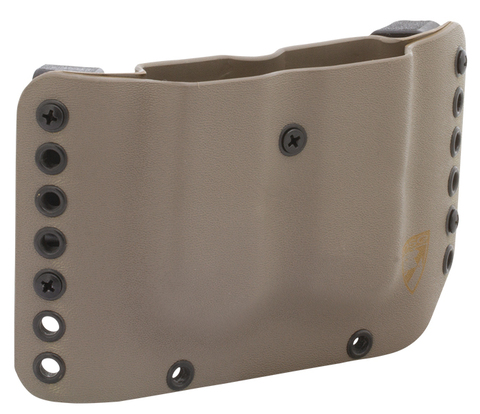 The DSG Arms Alpha Double Mag Carrier is a Kydex magazine pouch for two double-row pistol magazines.