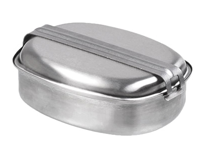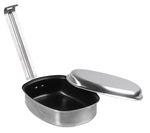Reproduction of the French Army cookware in stainless steel version, consisting of a pan with non-stick coating and a lid that serves as a plate