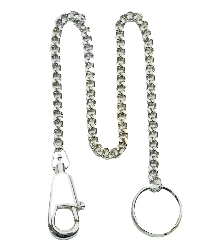 Sturdy metal link chain with snap hook and key ring.