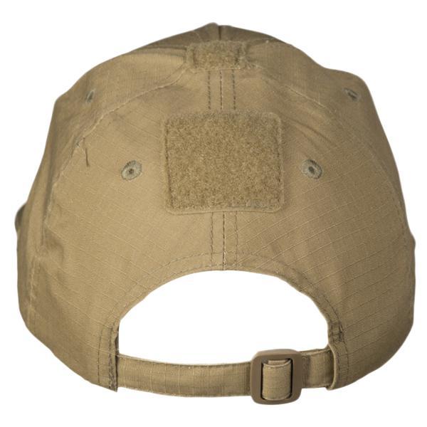 Бейсбольная кепка в тактическом варианте. Полоски-липучки спереди, вверху и сзади для крепления знаков различия. 6 вентиляционных отверстий. Пряжка сзади для регулирования объема. Единый размер.
