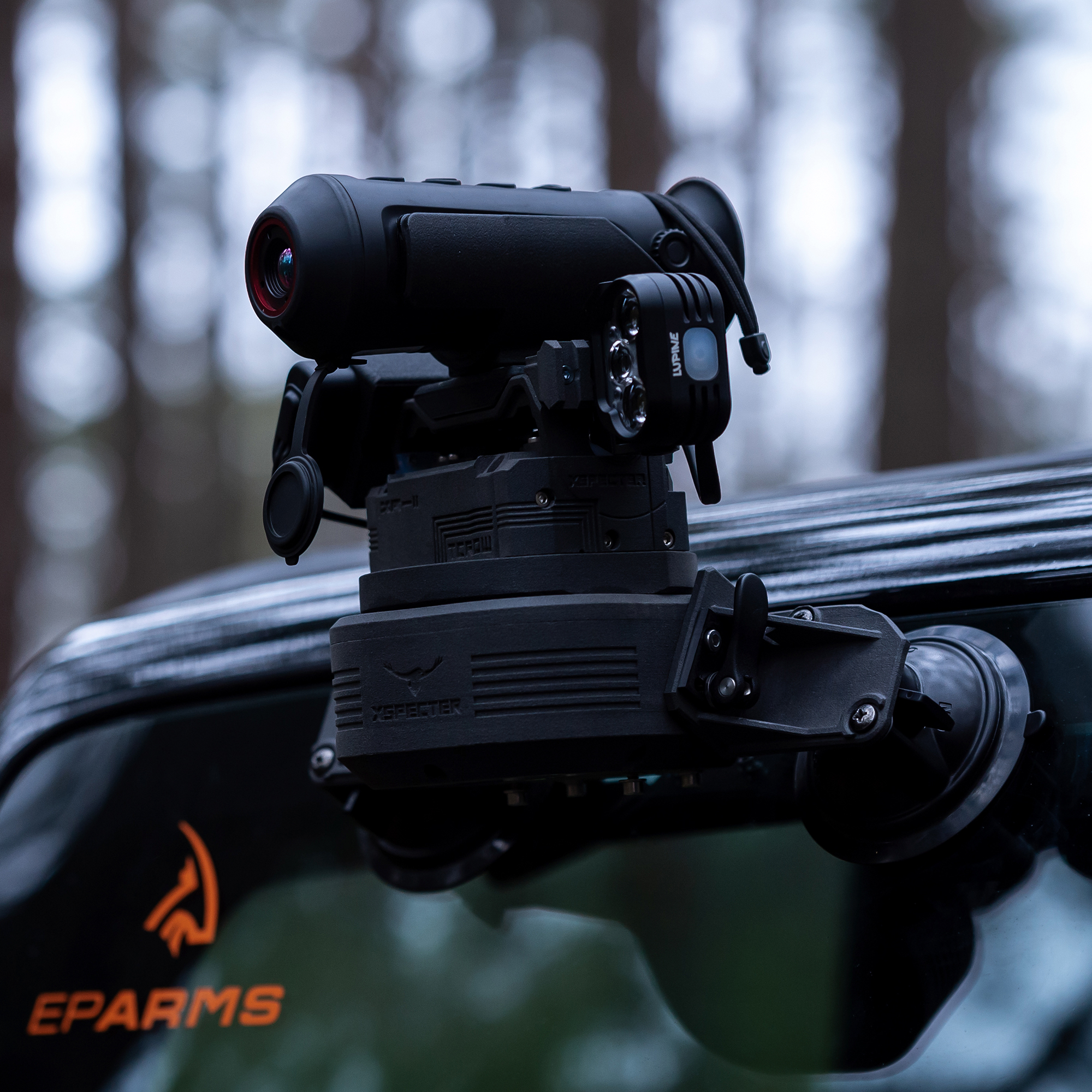 The T-CROW XR-ll tripod from XSpecter enables the detection of living creatures and wildlife practically and comfortably from inside the vehicle. No more tiring hand-held approach, thanks to sensor-controlled and stabilized 360° rotation and 55° tilt range, it allows systematic and accurate detection of any movement around your own location.