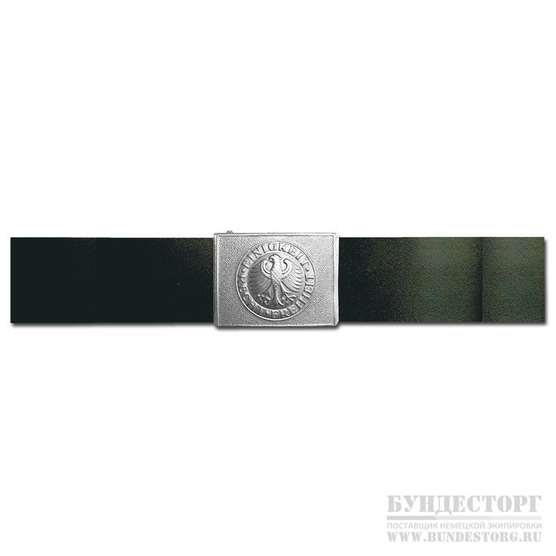 Копия служебного ремня Бундесвера с металлической застежкой серебристого цвета с изображением орла и надписью "Einigkeit und Recht und Freiheit"/ "Единство, право и свобода". Ширина: прибл. 5 см. Материал: кожа.