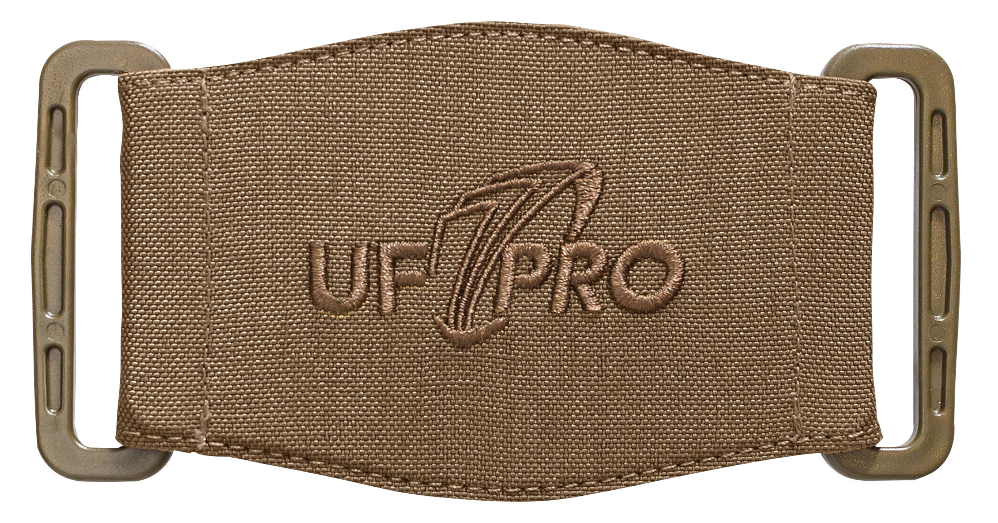 UF PRO Waist/Flex Belt buckle with embroidered UF PRO logo. The reinforced and durable buckle is an important part for the secure and comfortable fit of the Striker's Waist/Flex system ULT Combat Trousers and the P-40 Gen.2 Shorts.
