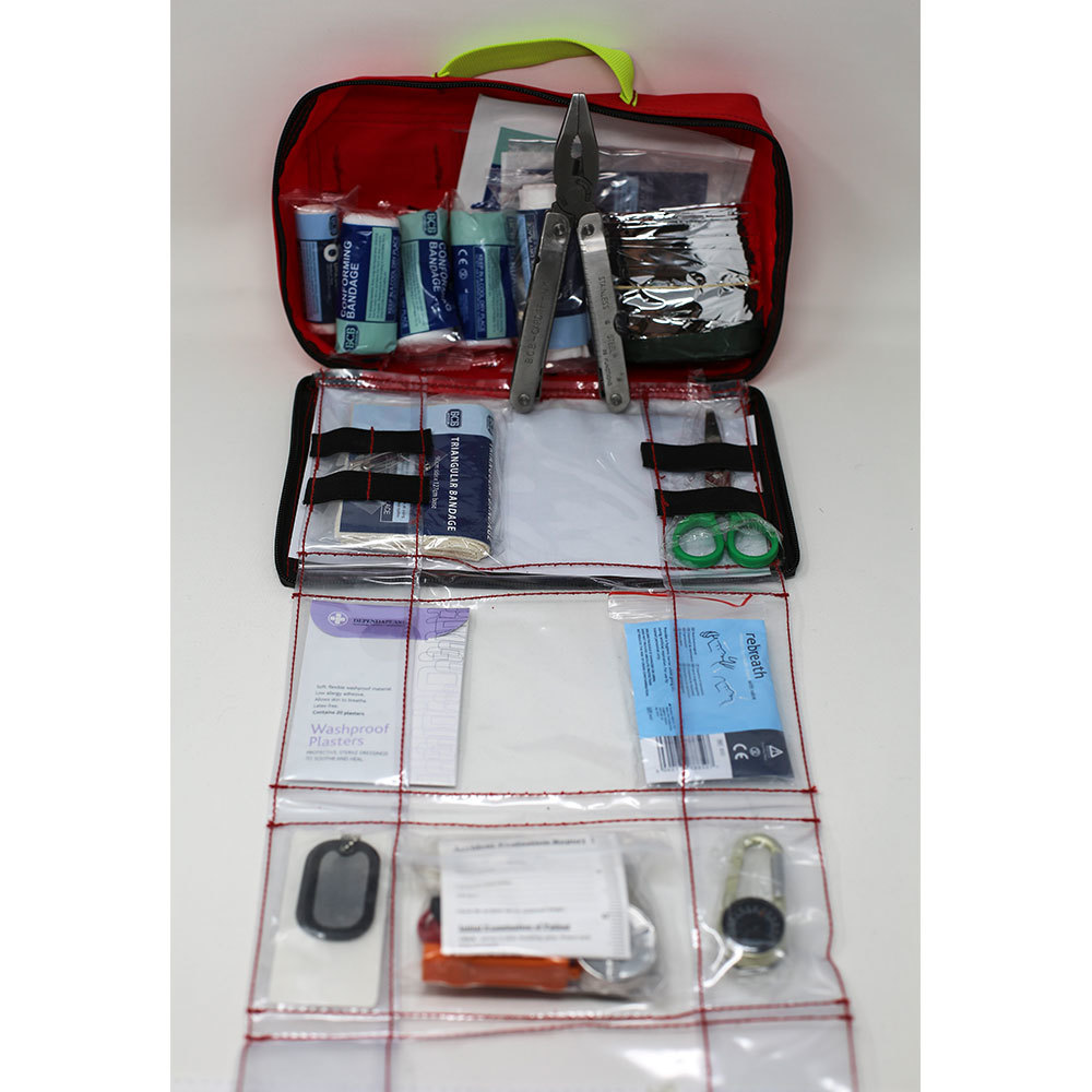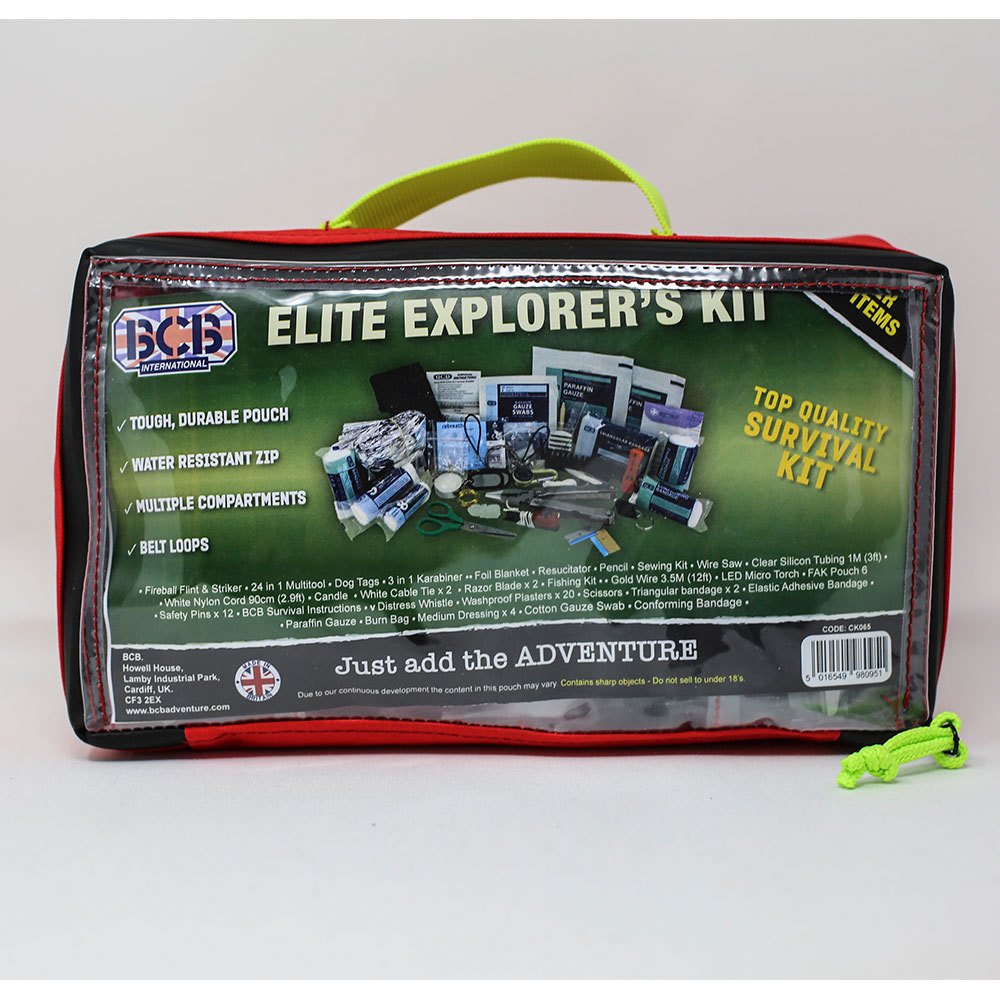 The Elite Explorers Kit is the ultimate survival kit for your outdoor adventure. It's filled with useful equipment, tools, first aid kit, and emergency equipment. The sturdy Nylon bag made of 500 denier Nylon has a water-repellent zipper so that all equipment stays dry. The transparent inside pockets offer space that is visible from the outside and quickly accessible.