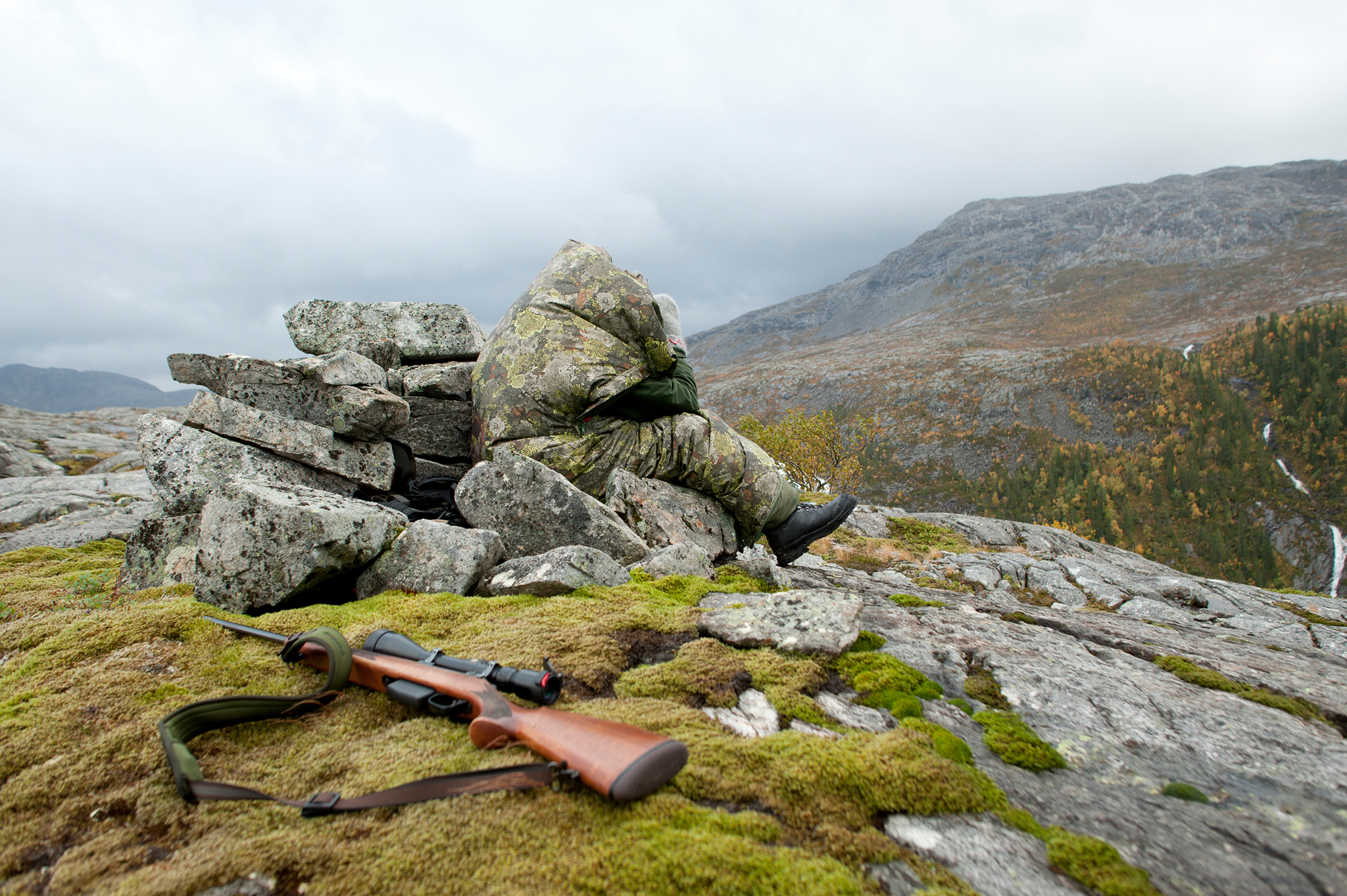 In Norway, the invention is commonly known as "Fjellduken" or "Jervenduken". Primarily it was designed as a wind and waterproof poncho/windbreak for hunters, but it can just as easily be used as a makeshift bivouac or flexible-use tent tarp. The Jerven bivy sack can protect both a person and the backpack from precipitation and cold. It can be opened as a roof structure for a whole group or serve as a sleeping bag or cover for the sleeping bag. Thanks to its versatility and thoughtful design, the Jerven bivy sack can be used exactly as it is needed at any given time. The Jerven Fjellduken has been successfully used by the Norwegian Army since 1983. The unique Jerven Mountain camouflage is perfectly suited for mountain landscapes, which is why the Jerven Fjellduken is now also used by other European mountain units.
