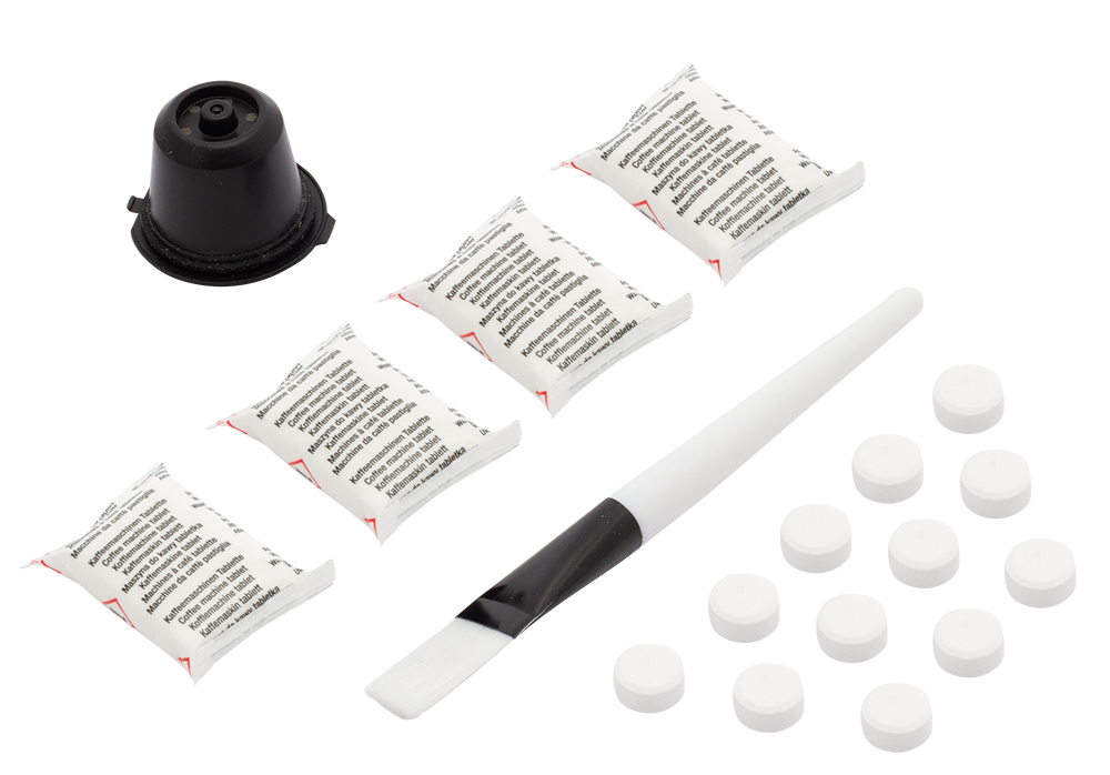Package includes: cleaning and descaling instructions; 1x reusable cleaning capsule (reusable up to 50 times), 4x descaling tablets for coffee machines, 12x cleaning tablets for coffee machines.