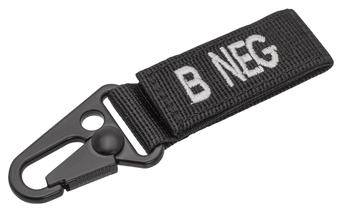 The Tactical Blood Type Keyholder is suitable for securing small pieces of equipment and can quickly provide life-saving information to doctors and paramedics in an emergency.