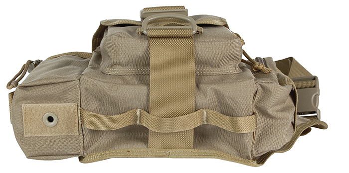 The multifunctional Maxpedition Jumbo Versipack features a quick release buckle and slip-in tab for instant access to multiple pockets and dividers, a roomy rear compartment with Velcro closure for CCW, a pocket for a 1L water bottle or radio, and an ergonomic shoulder and waist belt with quick release buckle. The Versipack is made entirely of water and abrasion resistant 1050 denier nylon, which is triple PU coated on the inside and Teflon coated on the outside.