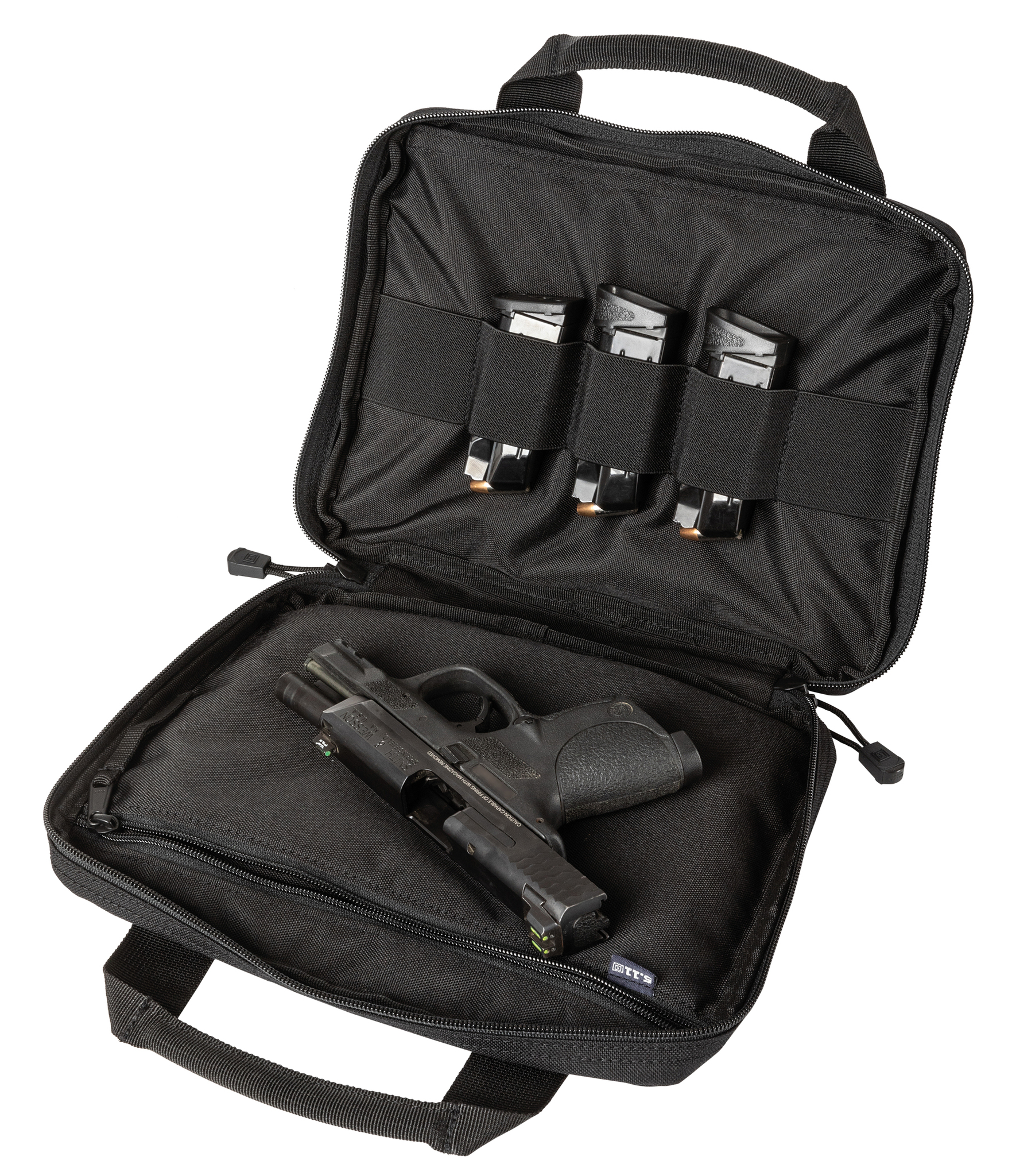 The fully padded Single Pistol Case from 5.11 Tactical is constructed of rugged 1050D nylon and features an interior zippered compartment for your handgun, a series of durable elastic loops for magazines and lockable perimeter zippers for added security.