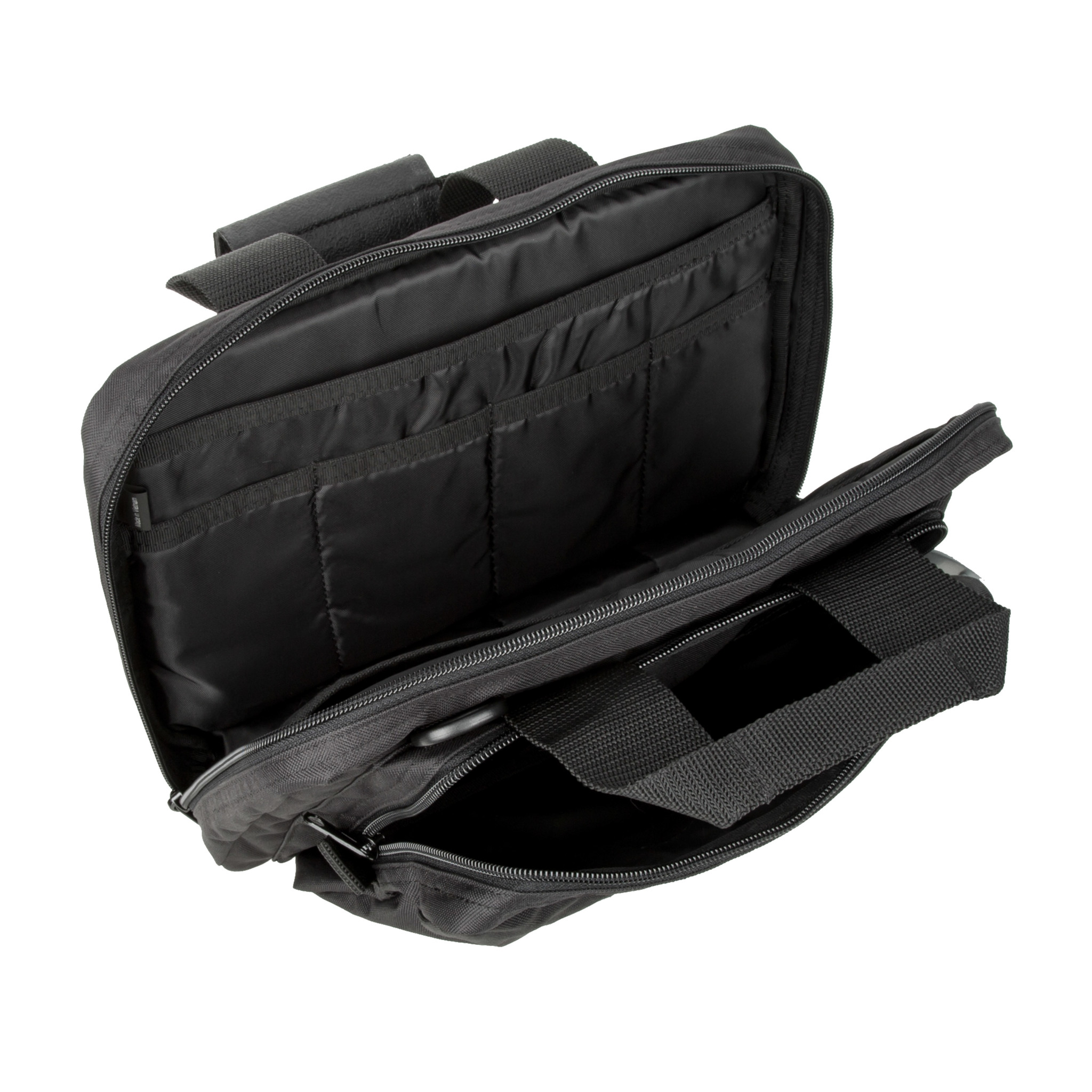 Сумка Sportster Delux Range Bag - это многофункциональная сумка для переноски, которая идеально подходит для спортивных стрелков или профессиональных пользователей. Она предлагает максимально возможное пространство для хранения пистолетов, магазинов, боеприпасов или аксессуаров. В ней есть основное отделение для удобной организации аксессуаров благодаря небольшим внутренним карманам. Также спереди есть небольшое отделение с двумя съемными карманами для пистолетов.