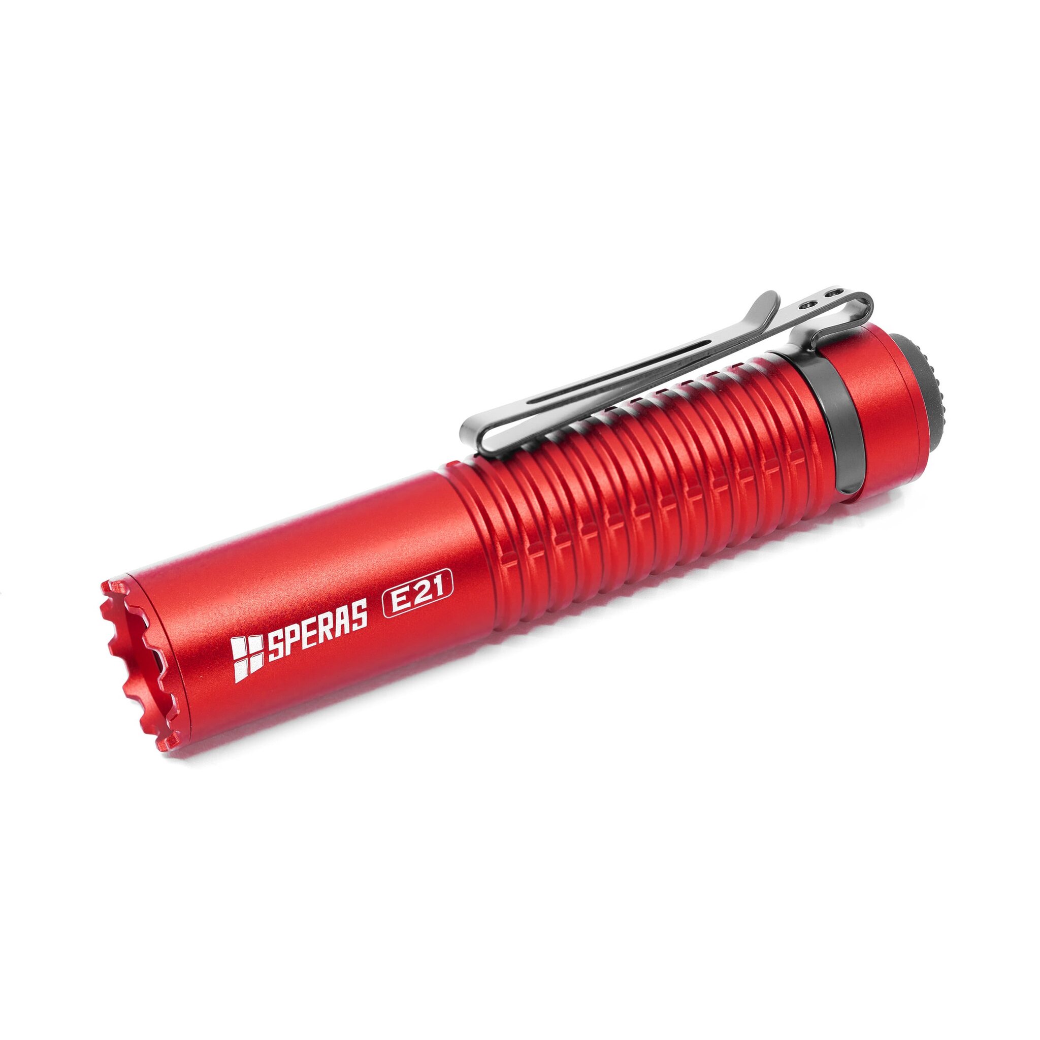 SPERAS Flashlight E21 rechargeable, compact, 2000 lumens, 322 meters, IP68 RED