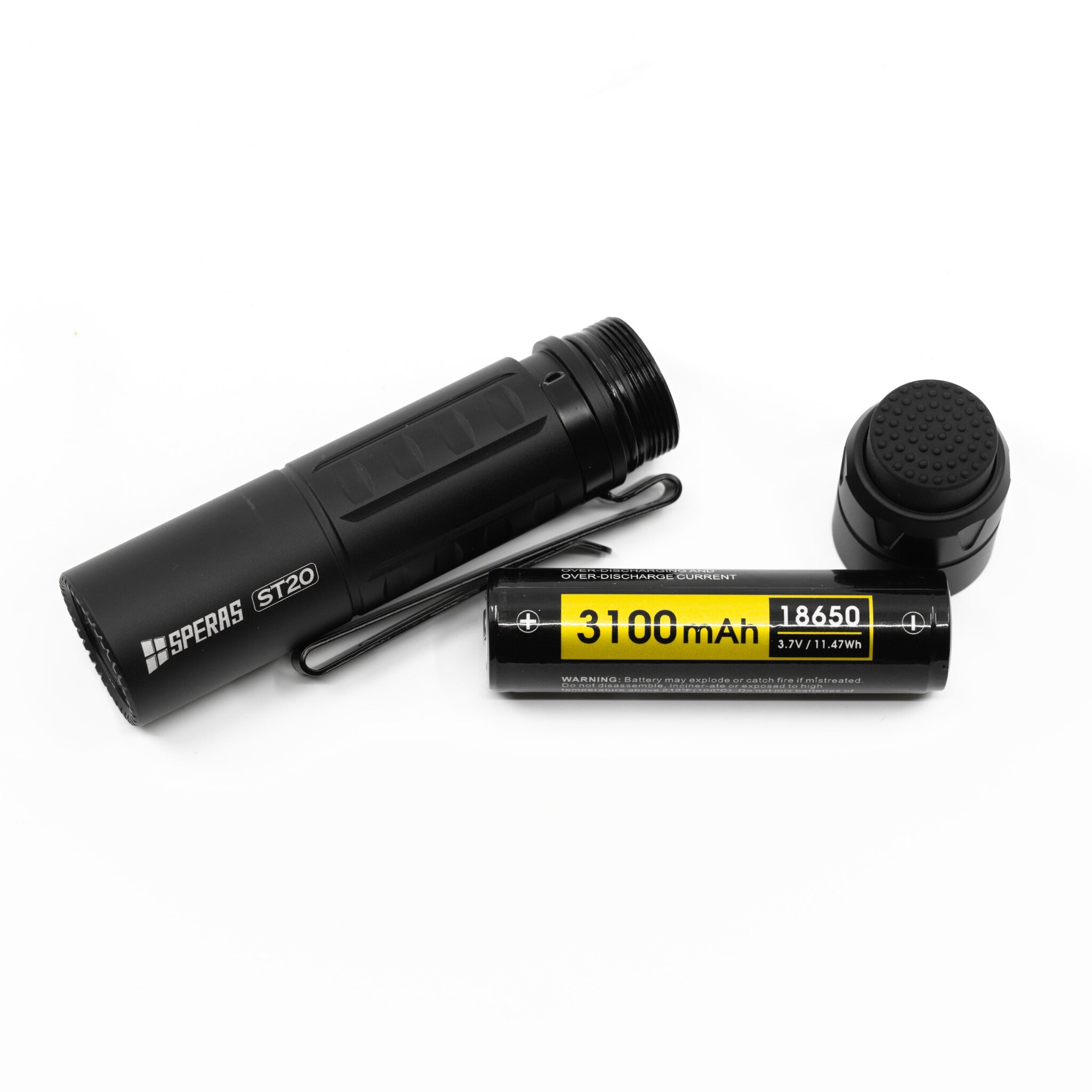 SPERAS Flashlight ST20A compact, 1300 lumens, 175 meters, IP68 BLACK