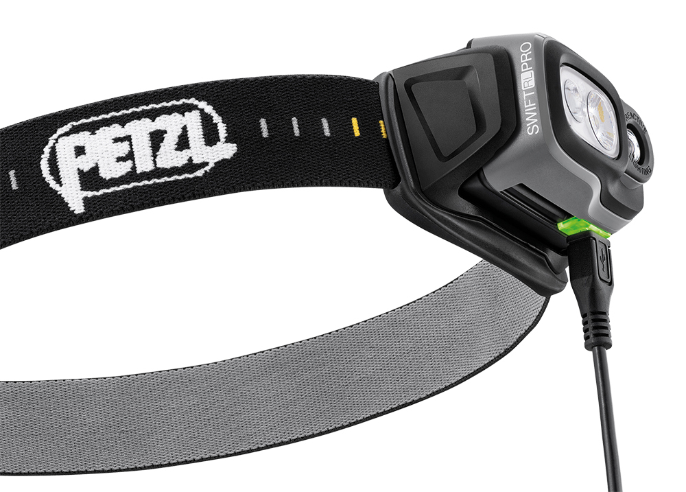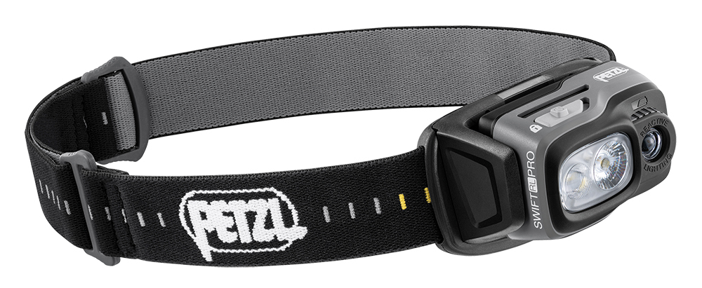 The Petzl SWIFT RL PRO is an extremely powerful, lightweight, rechargeable headlamp with multiple light cones and REACTIVE LIGHTING® technology for near and far vision. White or dimmed red light. 900 lumens.