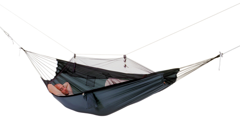 Amazonas Ultra-Light Hammock Moskito-Traveller, the hammock with double use: One side is complete with firmly sewn mosquito net, the other side can be used as a 'normal' hammock