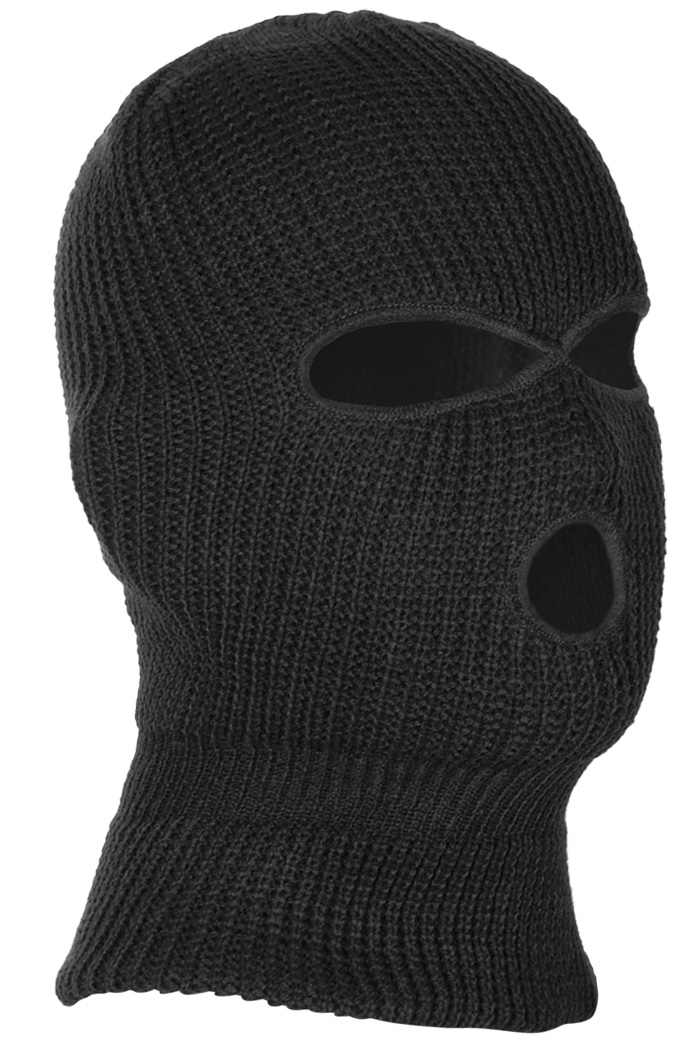 Knitted hood with opening for eyes and mouth made of pure polyacrylic.