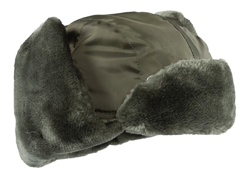 Warm lined fur hat with flip up ear and neck protection and quick release closure.