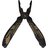 4" closed. Black and tan TPR handles. Tools include: Saw blade l Large blade l Phillips screwdriver l Screwdriver tip l Flat head screwdriver l Small screwdriver l Bottle opener l Can opener l Pliers l Small blade. Black nylon belt sheath.