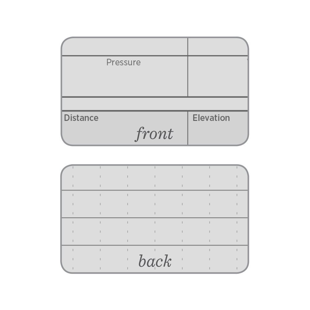 Dimensions: 4" x 6.25" x 0.38". Black Polydura cover with wind effect chart, MIL and MOA rulers, estimations, measurement conversions, Imperial and metric rulers. Wire-O ring binding. #20 white D.O P E. (Data On Previous Engagements) form pattern front paper with Universal pattern back.
