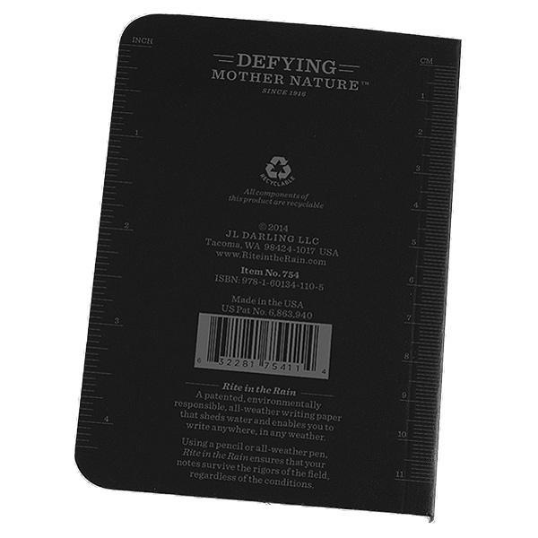 Оригинальный тактический блокнот с компактными размерами вмещается в нагрудный карман. Специальная бумага с акриловым покрытием позволяет в любую погоду вносить записи, которые в свою очередь отличаются продолжительной устойчивостью к погодным условиям. Записи могут вноситься на сухую бумагу карандашом, шариковой ручкой, маркером (напр. Edding). Во влажном состоянии особенно хорошие результаты достигаются шариковыми ручками от Rite in the Rain.