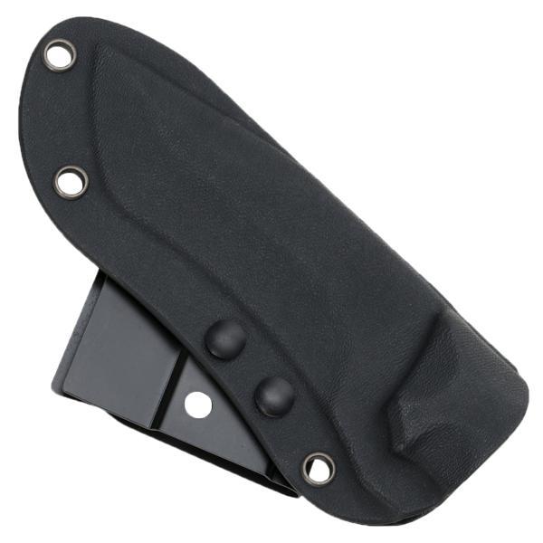 Нож керамбит. Широкий клинок из стали с титановым покрытием. Рукоять с накладками из G10 и углублениями под пальцы надежно лежит в руке. Ножны из Kydex с металлическим зажимом.