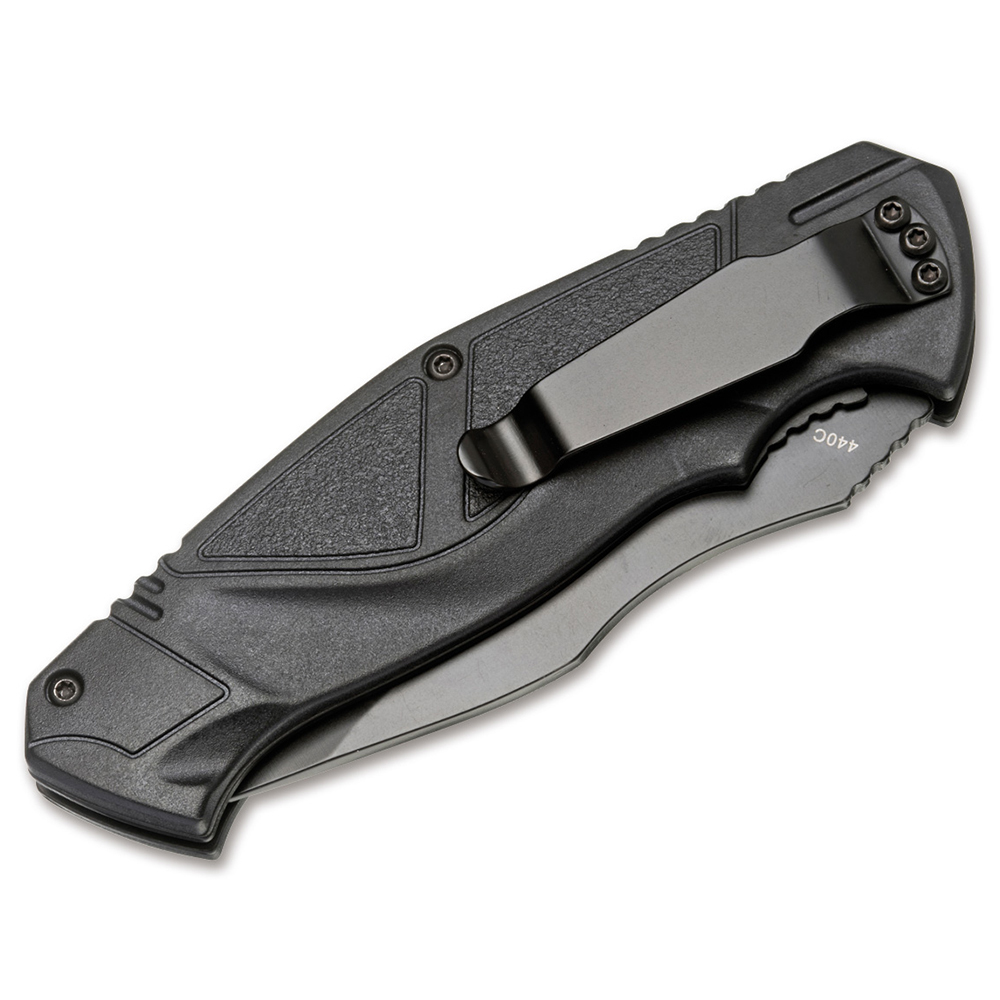 Карманный нож Magnum Advance All Black Pro 42 идеально подходит для использования. За ручки можно легко взяться в перчатках или без них. Управляемость также улучшена благодаря лезвию с широким внутренним радиусом, так как большой палец опирается на спину. Зажим (острием вниз) завершает оснащение двуручного ножа.