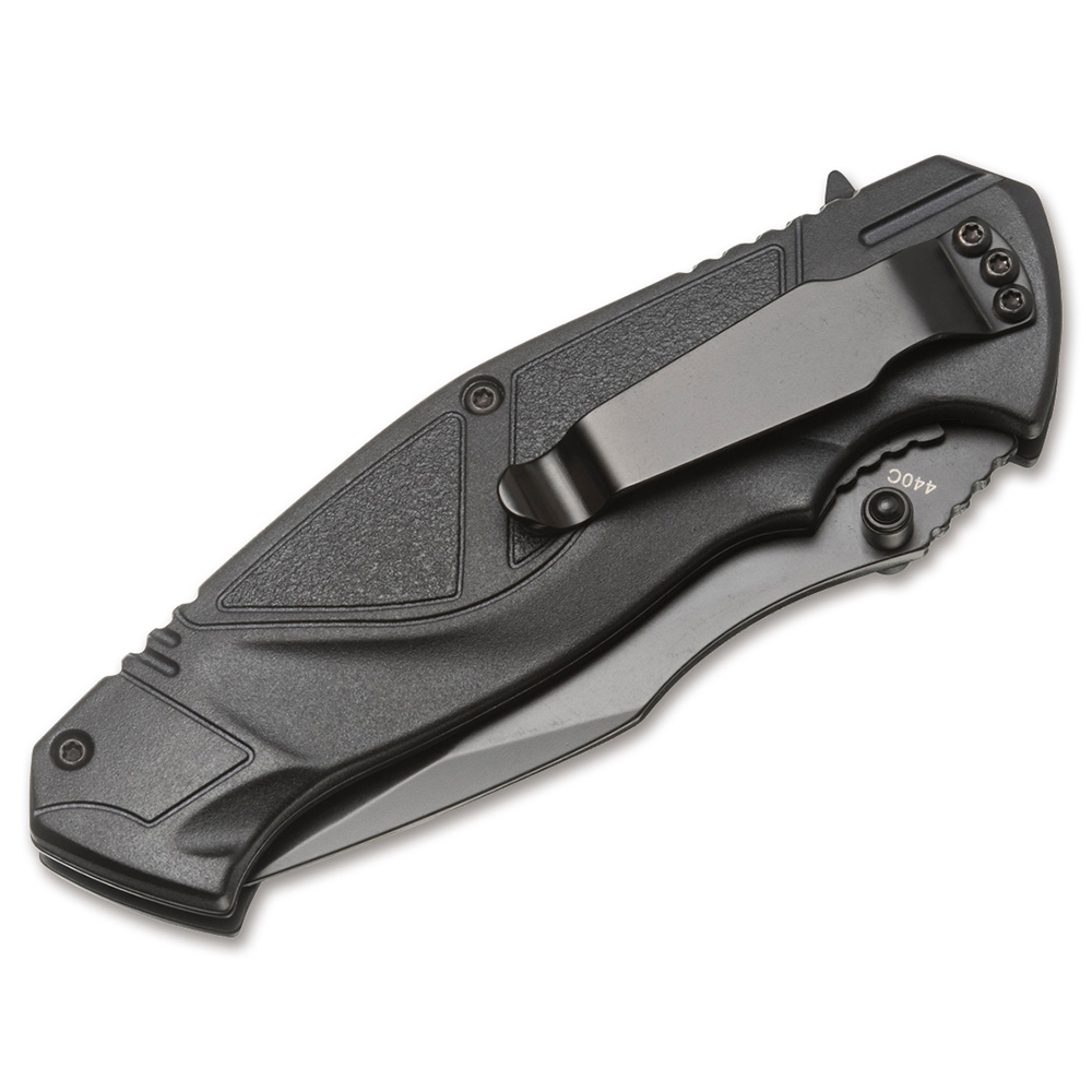 Карманный нож Magnum Advance All Black Pro идеально подходит для использования. За ручки можно легко взяться в перчатках или без них. Управляемость также улучшена благодаря лезвию с широким внутренним радиусом, так как большой палец опирается на спину. Зажим (наконечник вниз) завершает оснащение.
