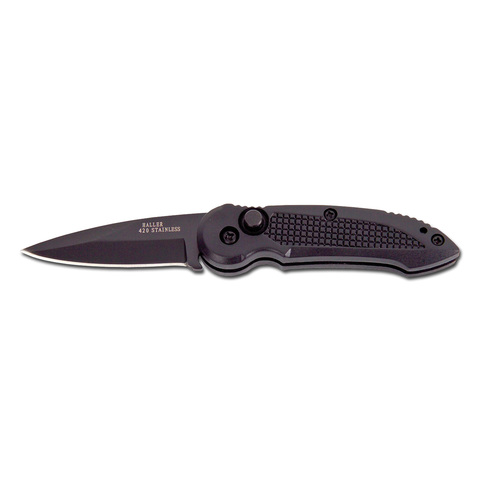 Автоматический складной нож от Haller. Клинок открывается с нажатием на кнопку. На рукояти имеется петля для темляка. В комплект поставки входит чехол с крепежной клипсой.