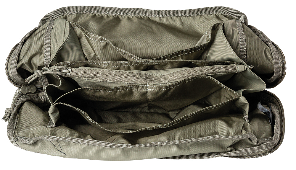 5.11 Tactical Emergency Ready Bag is a convenient and compact first aid emergency bag with stowable crossbody/ hip belt. The Emergency Ready Bag opens generously to provide full access from the top without everything falling out. The bag features a main compartment with dividers, an elastic stretch zippered pocket, straps for attaching tape rolls and two slip pockets on the outside. The Emergency Ready Bag has enough space for first aid and trauma equipment.