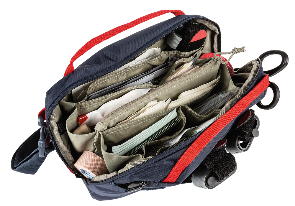 5.11 Tactical Emergency Ready Bag is a convenient and compact first aid emergency bag with stowable crossbody/waist belt