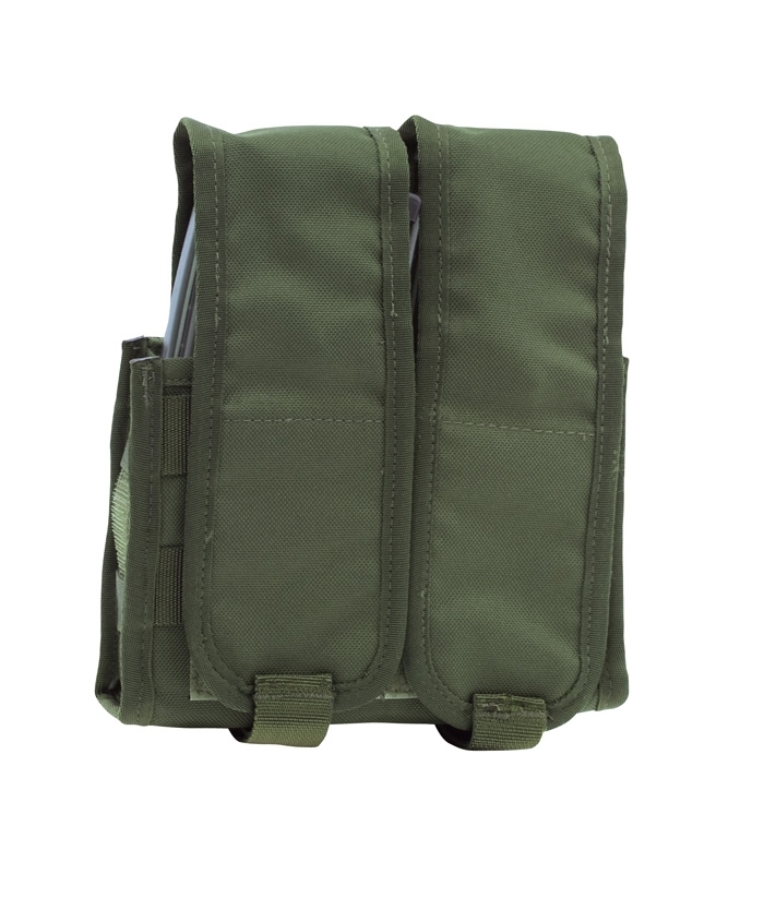 The Velcro center bar between the magazines can be unclipped on one side, allowing the entire width of the pouch to be used for larger magazines.