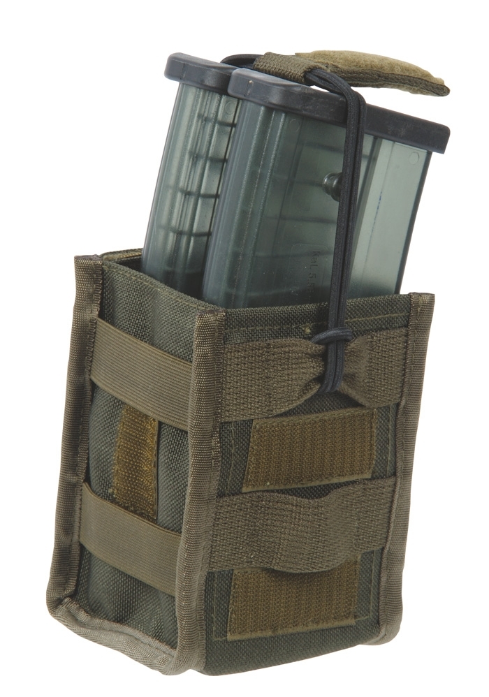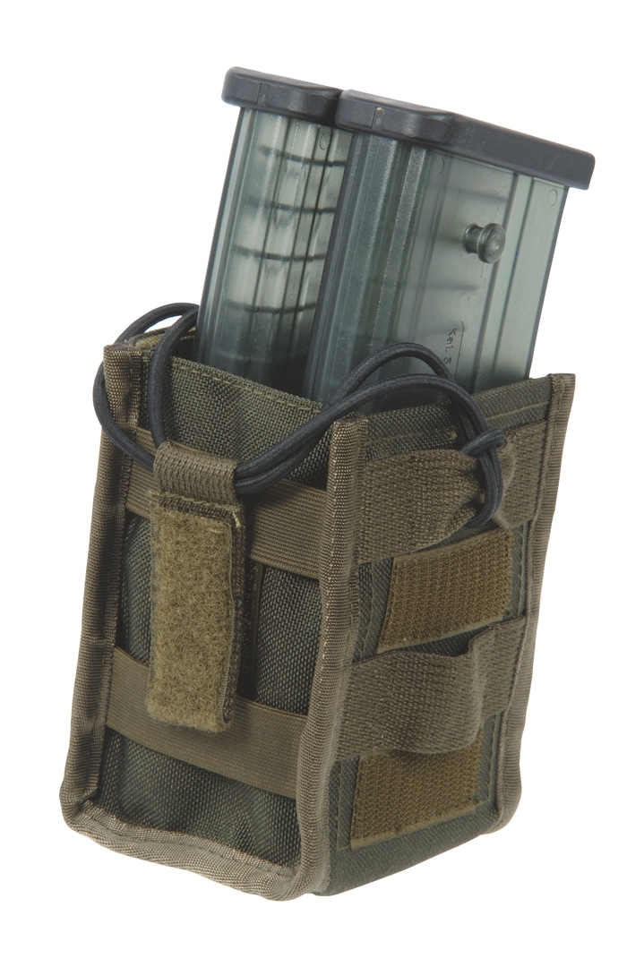 The double magazine pouch G36 MX36/2 can be closed or opened with a Velcro cover, or optionally used with an elastic band for quick access. The user can decide for himself with which safety function he wants to secure the magazine in the bag by changing the magazine cover. The rubber band can be secured with a Velcro strip on the side of the bag for trouble-free use. On each side of the pouch there are also two elastic straps and an adjustable elastic band, this allows the magazine pouch to be compressed so that even when the pouch is open in use the magazine cannot fall out.