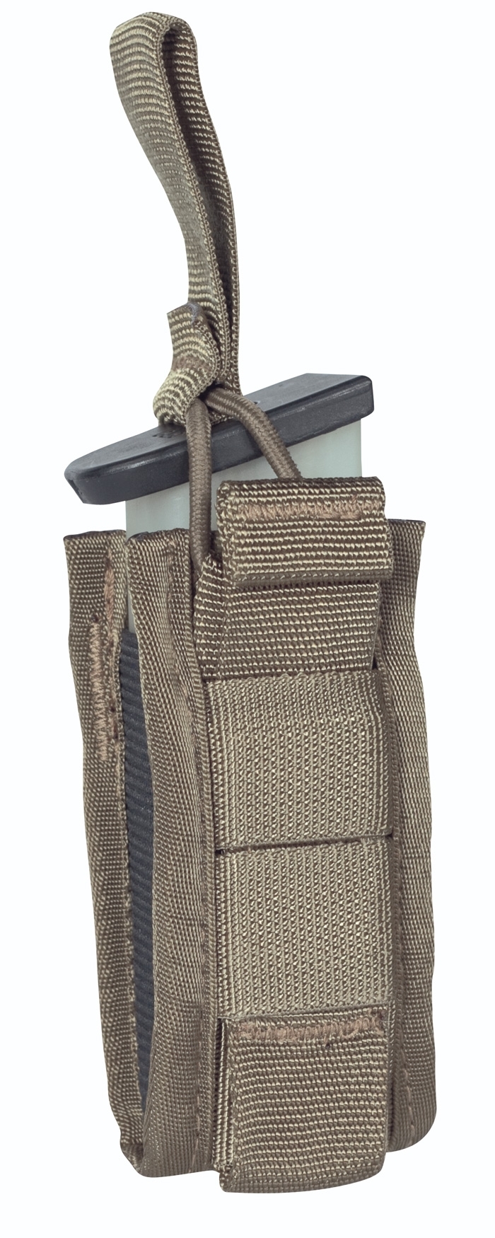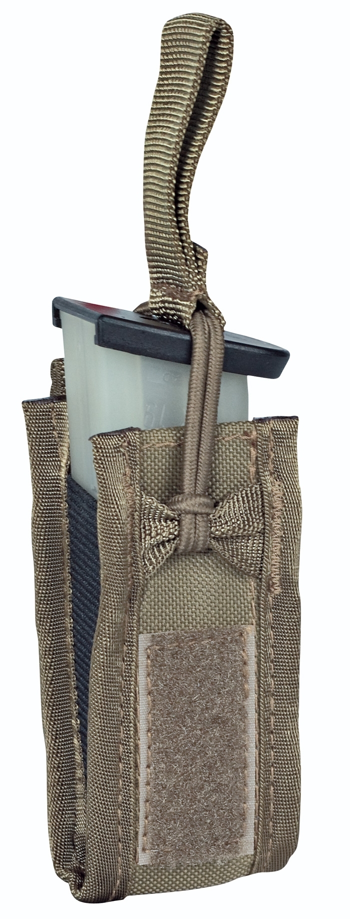 The magazine pouch P8 DELTA can be closed or opened with a Velcro cover, or optionally used with an elastic band for quick access. The user can decide for himself with which safety function he wants to secure the magazine in the bag by changing the magazine cover. There is an elastic band on each side of the pouch, making the magazine pouch compressible so that the magazine cannot fall out even when the pouch is open during use.