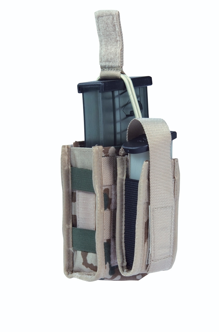 The magazine pouch P8 DELTA can be closed or opened with a Velcro cover, or optionally used with an elastic band for quick access. The user can decide for himself with which safety function he wants to secure the magazine in the bag by changing the magazine cover. There is an elastic band on each side of the pouch, making the magazine pouch compressible so that the magazine cannot fall out even when the pouch is open during use.