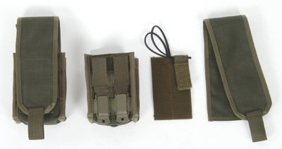 By using the TecSys modular loop system, the user can attach the P8 DELTA pistol magazine pouch to the sides, as well as to the front of the G 36/2 DELTA double magazine pouch.