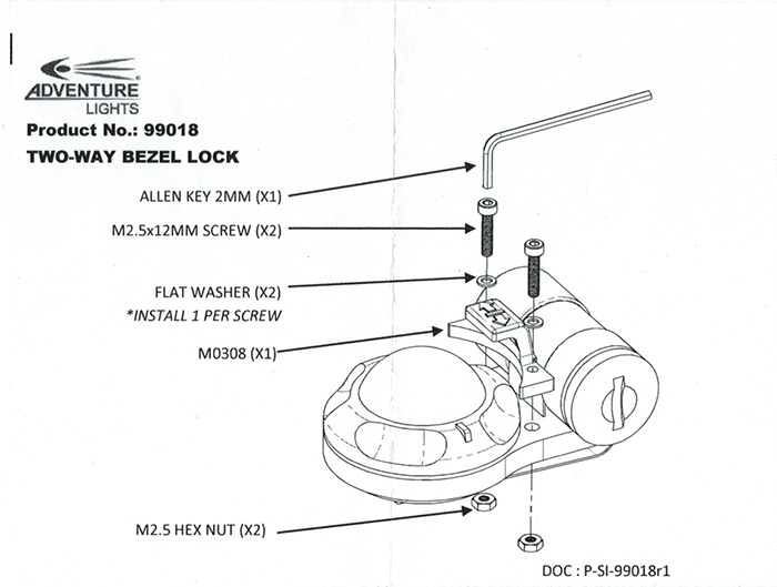 The Two Way Bezel Lock from AdventureLights is attached to the crown of the VIPs and prevents the crown from turning beyond the starting point. Suitable for all AdventureLights VIP signaling devices.