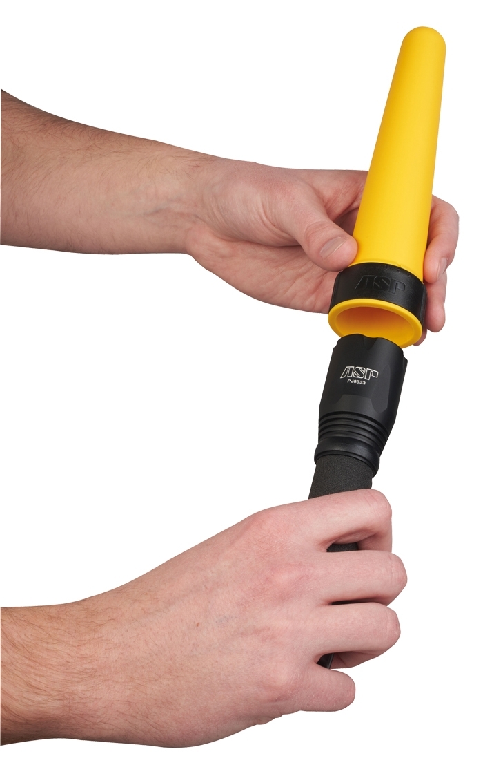 ASP Triad Traffic Wand traffic guide rod for the ASP Triad® (519050) and Turbo® flashlight. The cone simply slips onto the flashlight head and can be fixed in place with the black rotating ring.