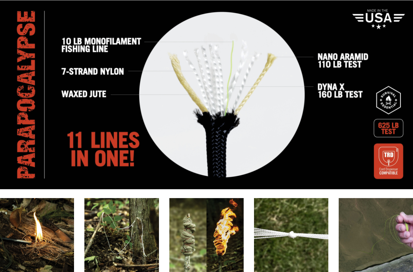 The super-strong and extremely low-stretch DYNA-X cord is perfect for emergency stitching, flossing or animal snares.