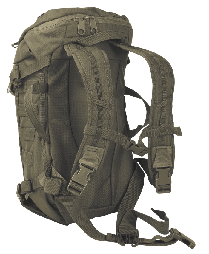 The front opening for the main compartment of the Backpack Outbreak can be pulled open completely. Inside there are Velcro areas on all sides for attaching additional equipment. Further, the backpack has two small side pockets, various loops and MOLLE attachments.