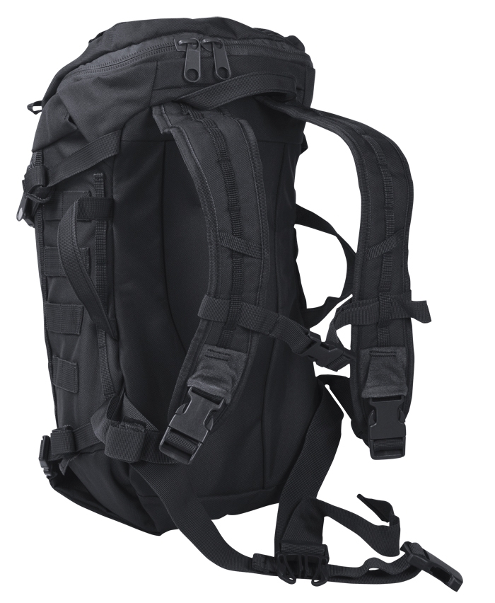 The front opening for the main compartment of the Backpack Outbreak can be pulled open completely. Inside there are Velcro areas on all sides for attaching additional equipment. Further, the backpack has two small side pockets, various loops and MOLLE attachments.