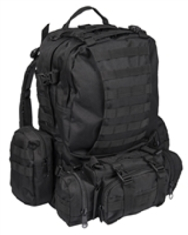The Mil-Tec Defense Pack Assembly backpack is a tactical 3 day mission backpack with two main compartments with mesh pockets and MOLLE receiving straps.