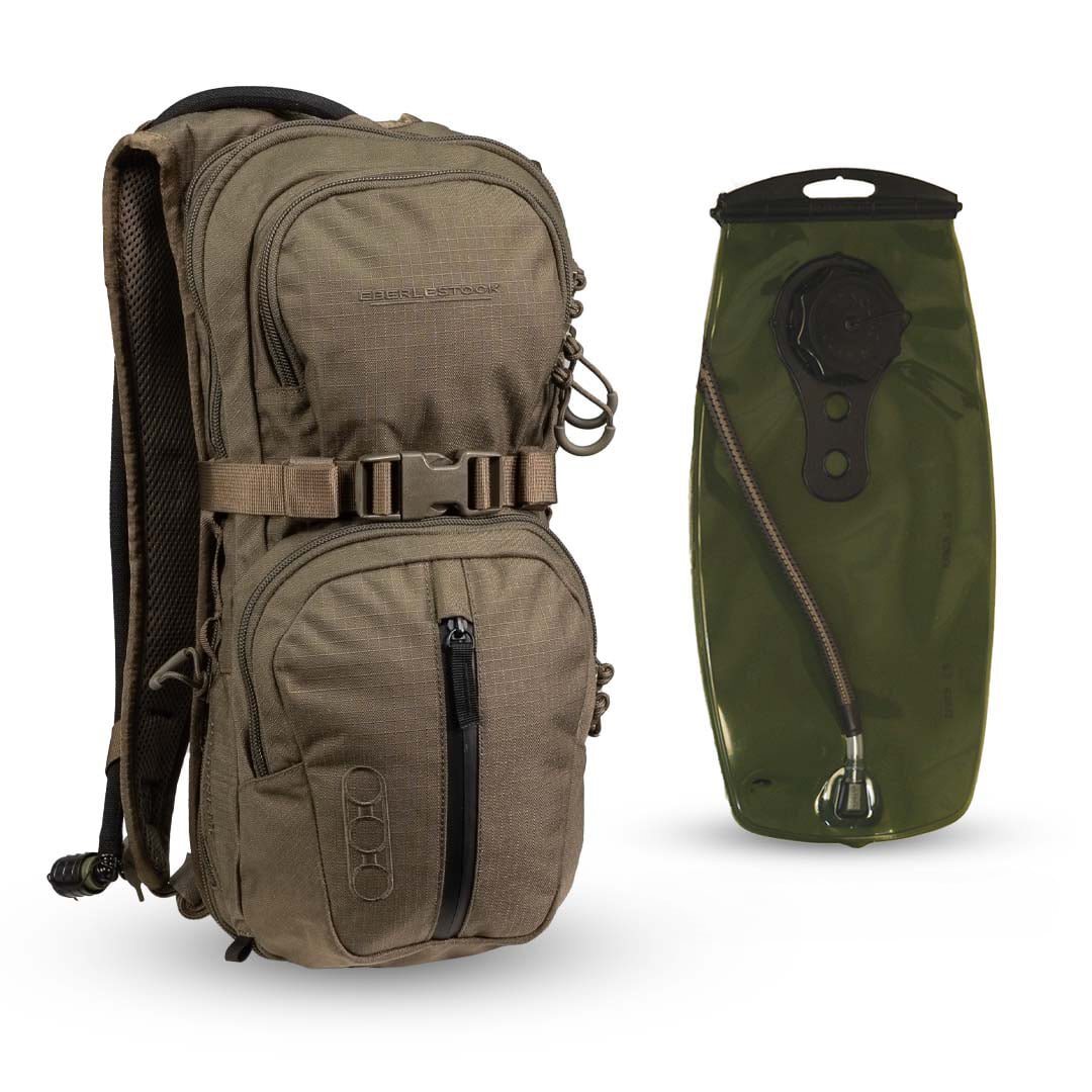 The Mini-Me is a hydration pack and more; this little baby could rightly be called the "Transformer." It has an expansion system that at first glance looks conventional. Start un-zipping its wrap-around zipper and you get more space for something long. But when you keep going, you realize that you've opened up a tunnel for the insertion of one of our gun scabbards. Slide one in, and you've got a rig that'll make carrying your gun as close to carrying a biathlon rifle as you can get without getting the real thing. Includes a premium 3-liter (100 oz) hydration bladder, a pull-out hip belt, and a secret compartment with a deployable Bird Bag inside.