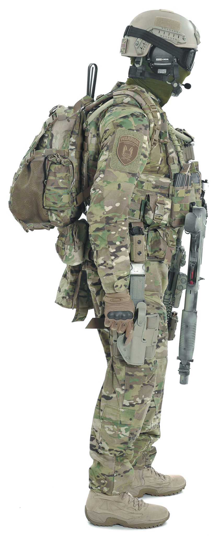 Made of water-repellent 500D Cordura, all webbing according to US Mil Spec, the materials used have the lowest infrared values (99.8%) and are produced according to military specification.