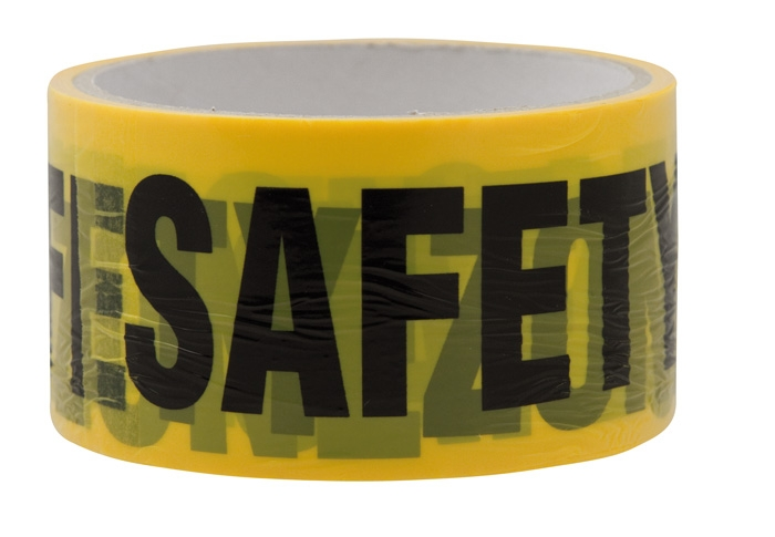 The yellow flutter tape is printed on one side in black, the length of a roll is 30 m and is 48 mm wide.