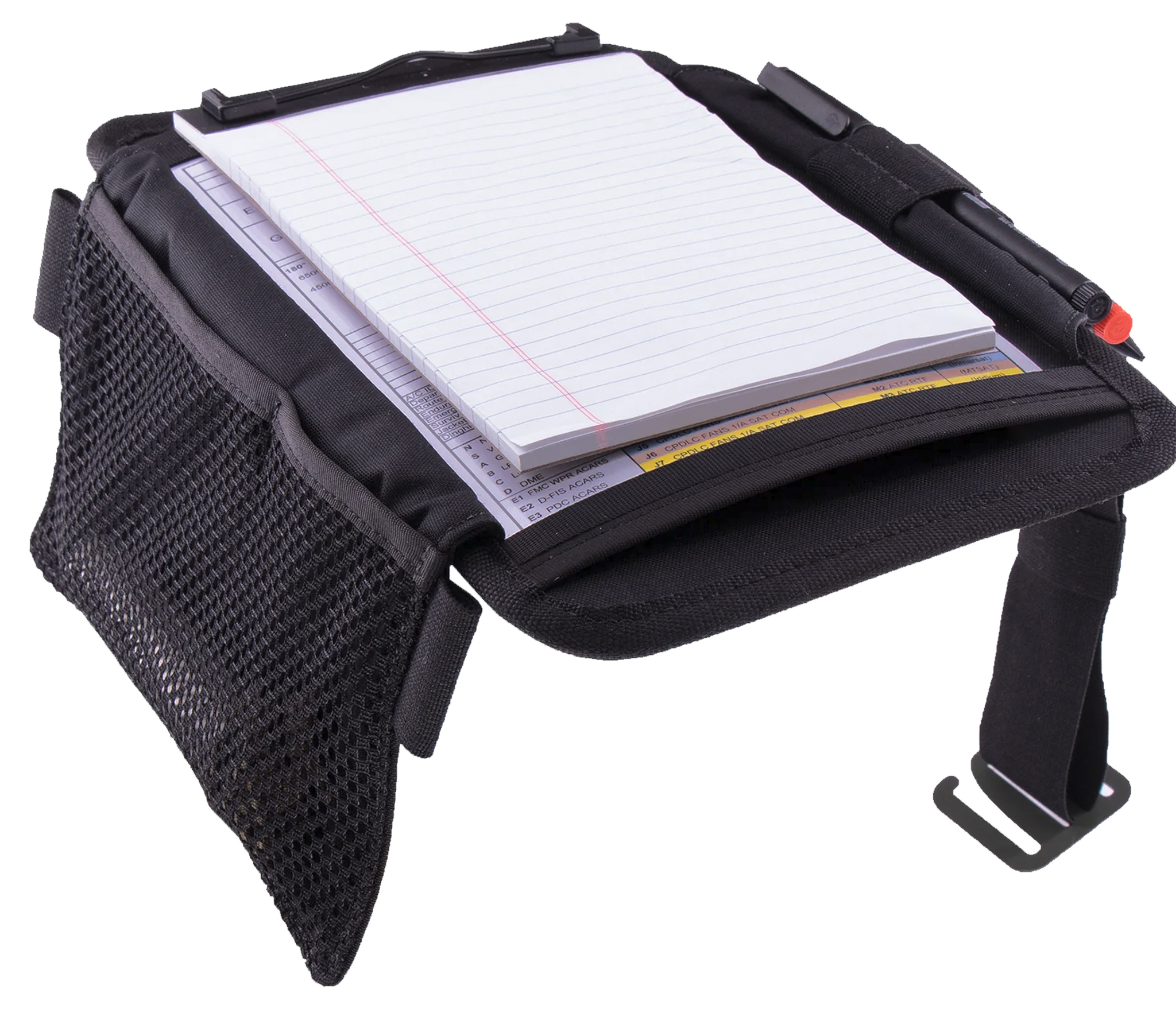 This kneeboard is comfortable even when worn for long periods of time, with a contoured and breathable mesh padded back and an adjustable elastic strap.