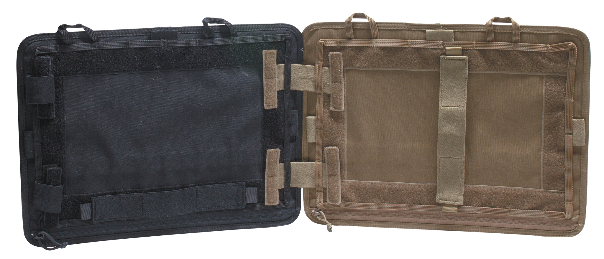 The Battle Board Leaf is a thin, lightweight and flexible card case with a modular expansion system of straps, loops and Velcro to combine with other Battle Board Leafs. Each Leaf is less than a quarter inch thick, allowing four interconnected folds to fold to less than an inch. Each Battle Board Leaf can be connected to another Battle Boards Leaf with the patented quick release system. The 500D CORDURA® makes the board both durable and lightweight. Each Leaf has a zippered main pocket, exterior Velcro closure, and elastic pen holders. The abrasion-resistant polycarbonate surface provides a clear view of maps and also serves as a firm writing surface.