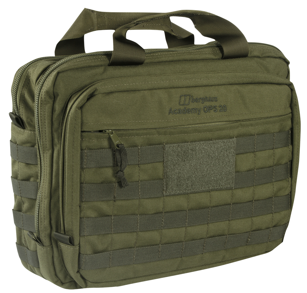 The Berghaus Academy Ops 20 consists of a modular document bag and an accompanying protective cover with carrying straps.