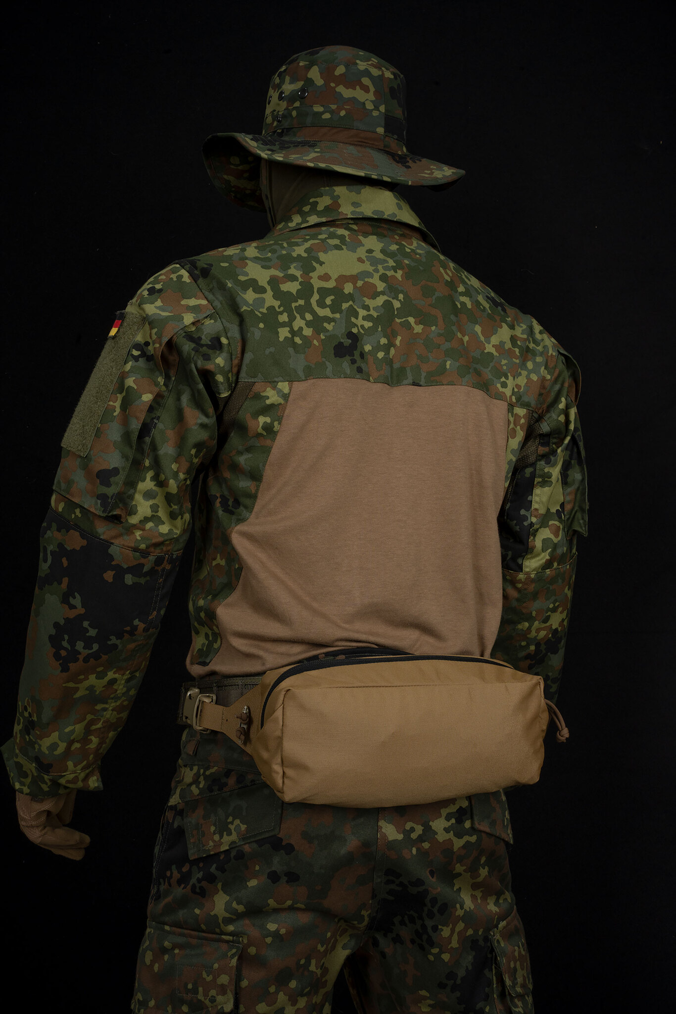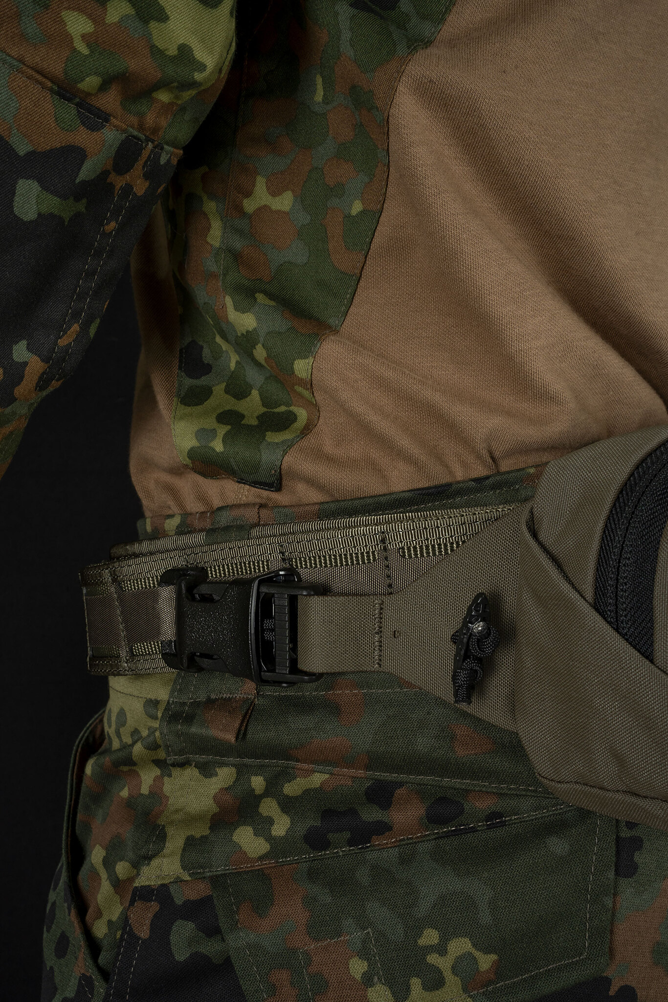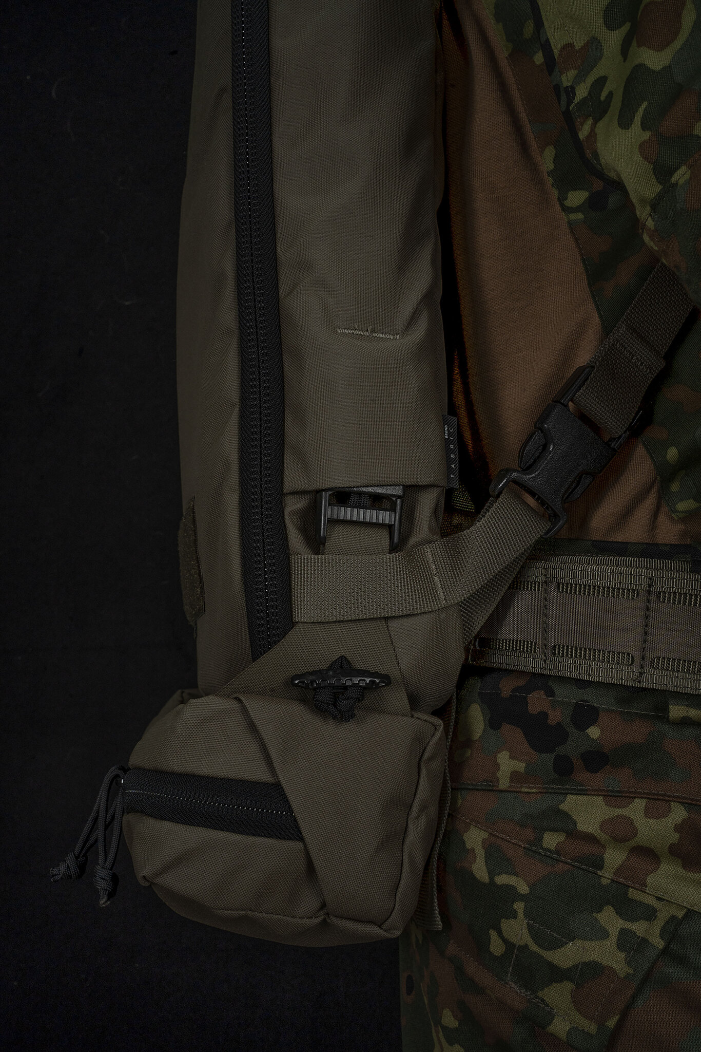 The Blackfolium Aura 13 QD Pouch can be worn solo as a hip pouch or at the bottom of the Medic Backpack Aura 13, you can also attach it anywhere via MOLLE. When attached to the AURA 13 QM Pouch, two Fastex closures (counterparts included) hold the pouch to the bottom of the backpack. A drawstring allows the fasteners to be ripped open and the Aura 13 removed. Sewn into the Blackfolium Aura 13 QD Pouch is a two-way zipper and a Tegris 8-Lock panel.
