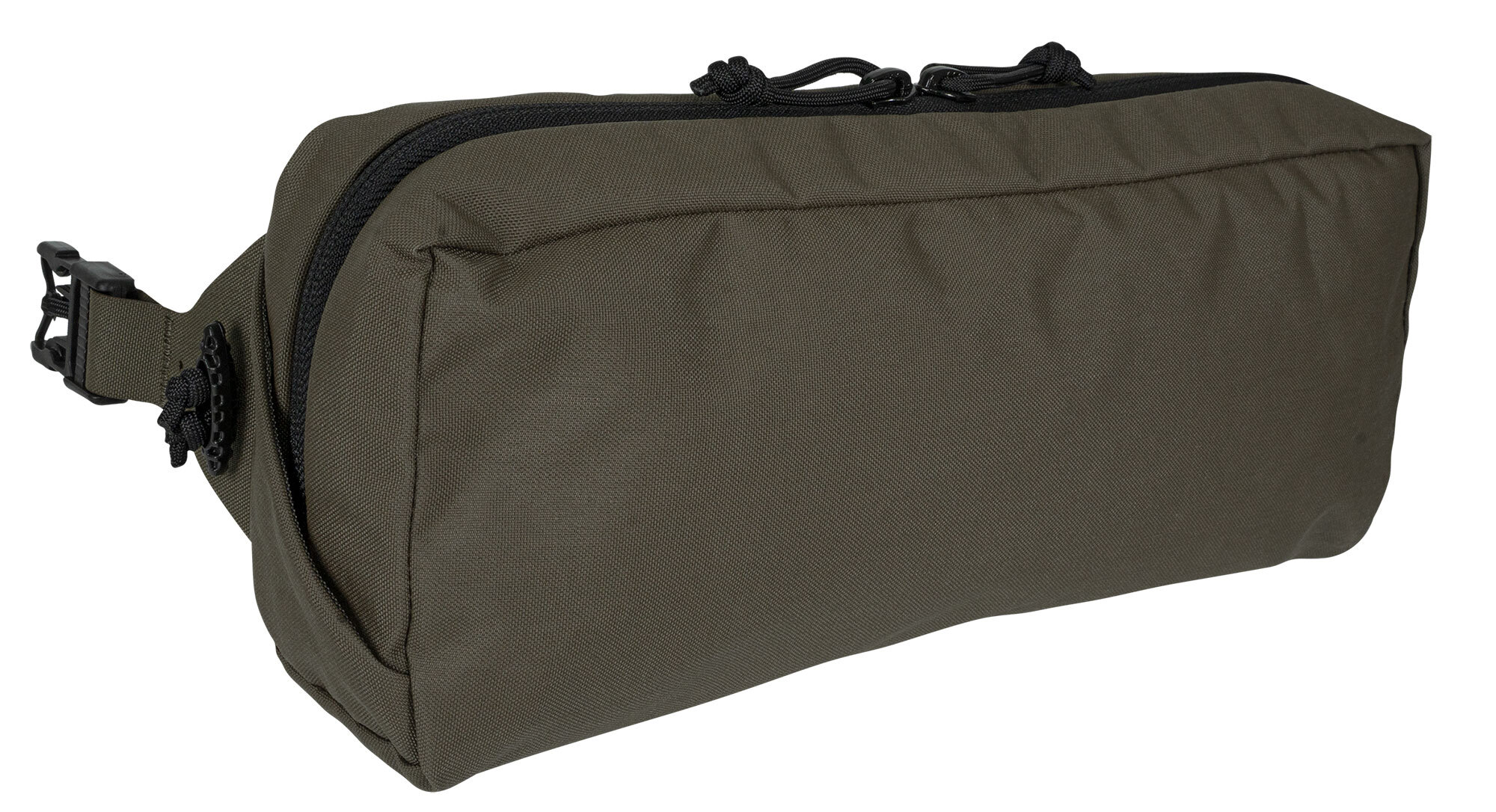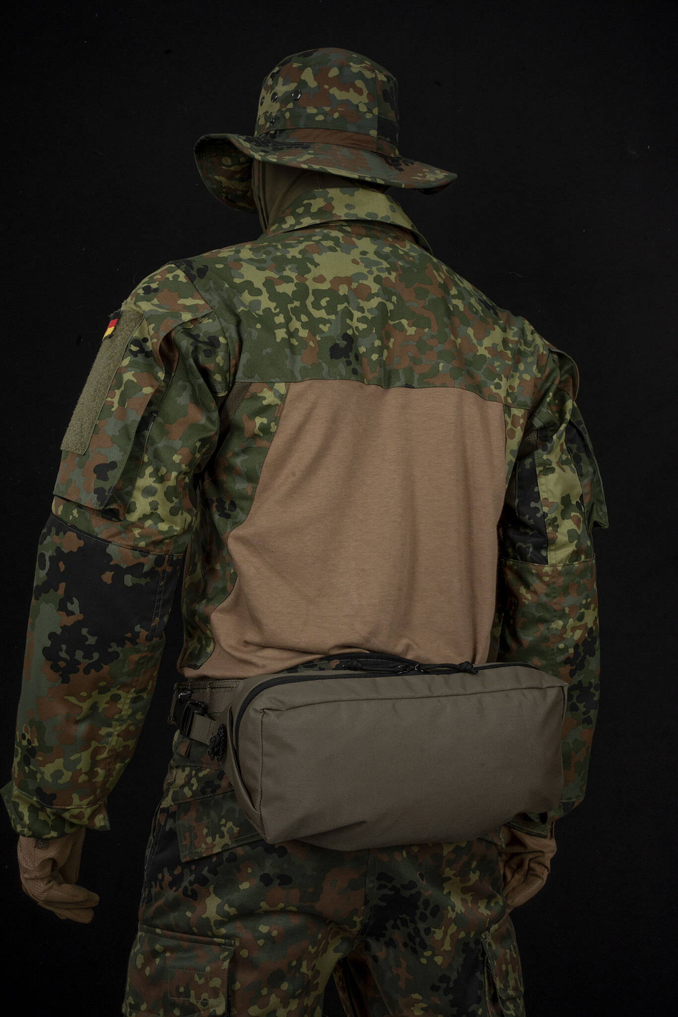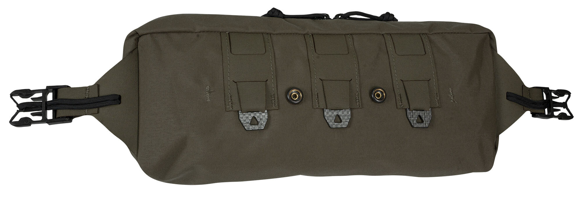 When the AURA 20 QM Pouch is attached to the Aura 20 Medic Backpack, two Fastex fasteners (counterparts included) hold the pouch to the bottom of the backpack. A drawstring allows the fasteners to be ripped open and the Aura 13 removed. Sewn into the Blackfolium Aura 20 QD Pouch is a two-way zipper and a Tegris 8-Lock panel. The Blackfolium Aura 13 QD Pouch can be worn solo as a hip pouch or at the bottom of the Medic Backpack Aura 13, you can also attach it anywhere via MOLLE.