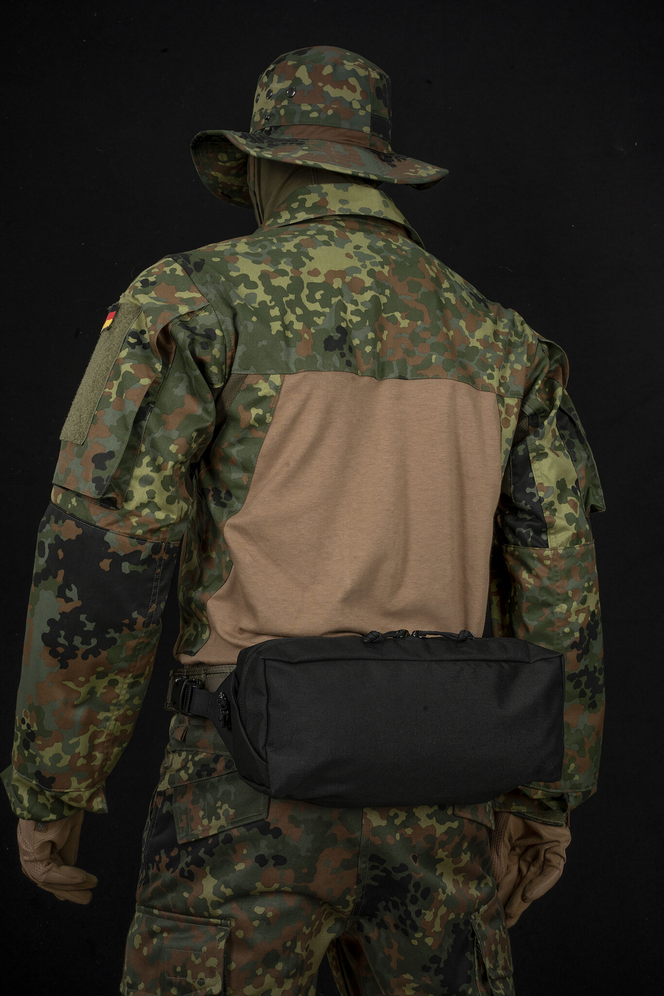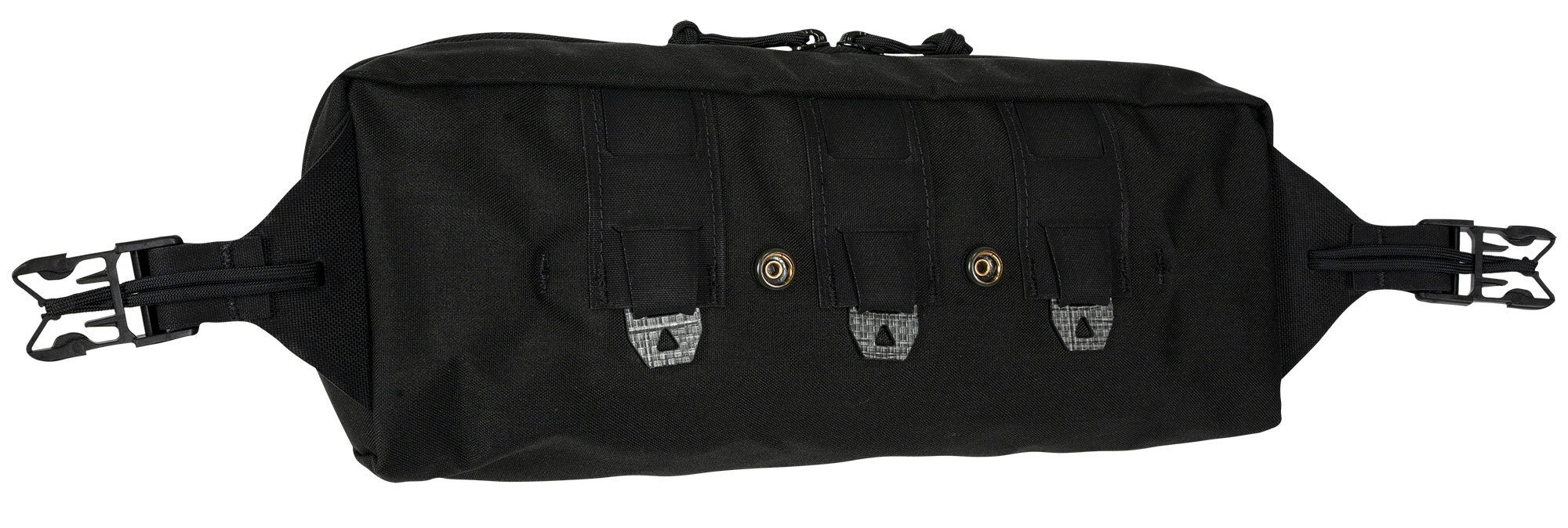 When the AURA 20 QM Pouch is attached to the Aura 20 Medic Backpack, two Fastex fasteners (counterparts included) hold the pouch to the bottom of the backpack. A drawstring allows the fasteners to be ripped open and the Aura 13 removed. Sewn into the Blackfolium Aura 20 QD Pouch is a two-way zipper and a Tegris 8-Lock panel. The Blackfolium Aura 13 QD Pouch can be worn solo as a hip pouch or at the bottom of the Medic Backpack Aura 13, you can also attach it anywhere via MOLLE.