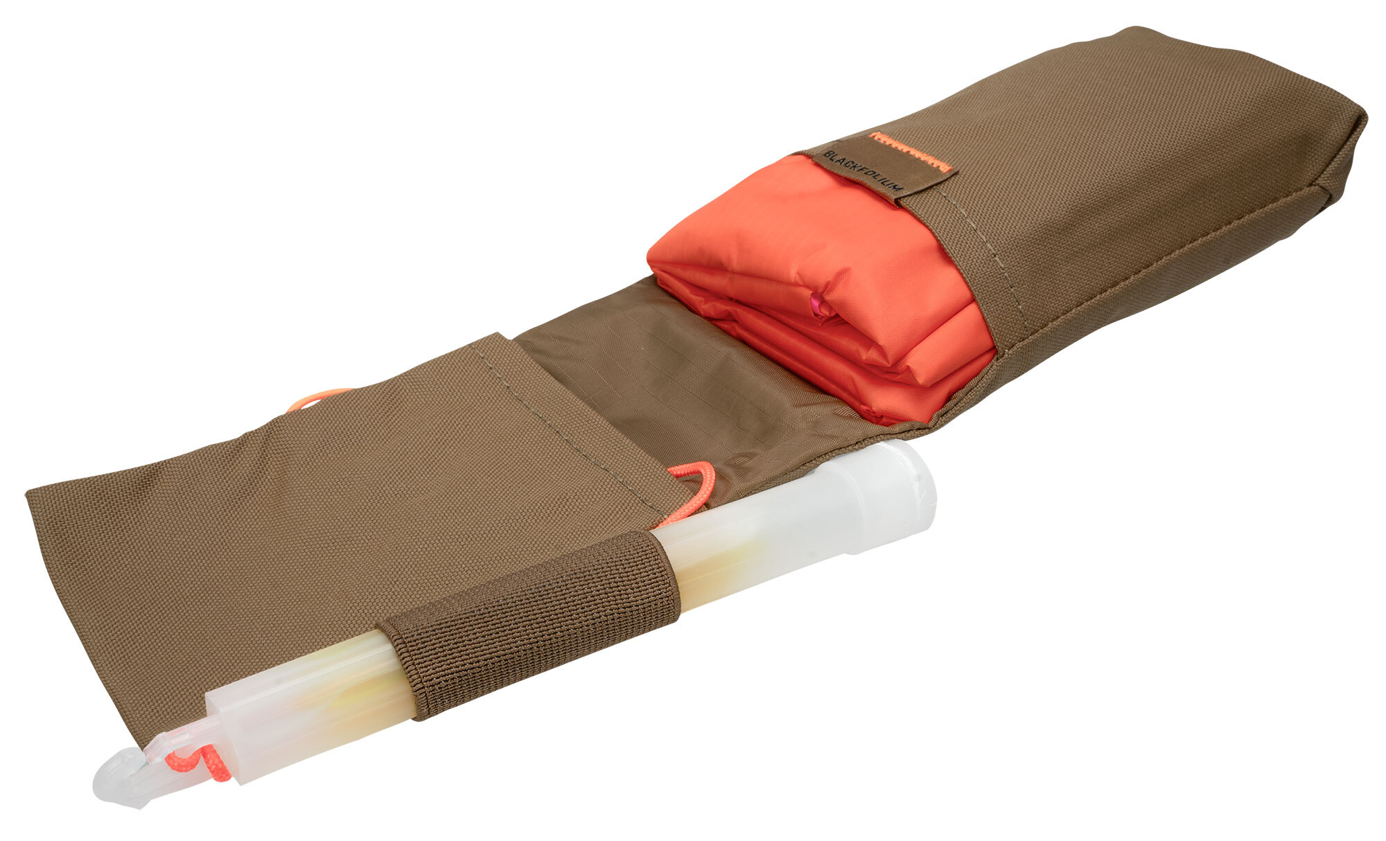 The GTAS from Blackfolium is a compact signaling tool kit. With its dimensions and light weight, it was originally developed for tactical use, but the GTAS is also useful for other outdoor activities. The GTAS weighs only about 180g, which is partly due to the fact that extra lightweight and waterproof rip-stop fabric was used to save volume and weight. The signal panel is two-tone (orange/magenta), making it possible to give different signals.